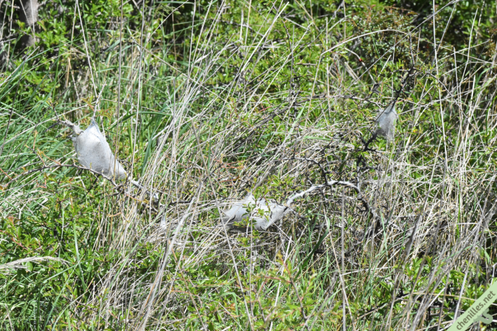 Published on 3 Mai 2022 in Rando-chenilles à Saint-Pons en ArdèchePleine résolution (1200 × 801) ← Précédent Suivant → Trois nids de Laineuse du cerisier côte à côte.
