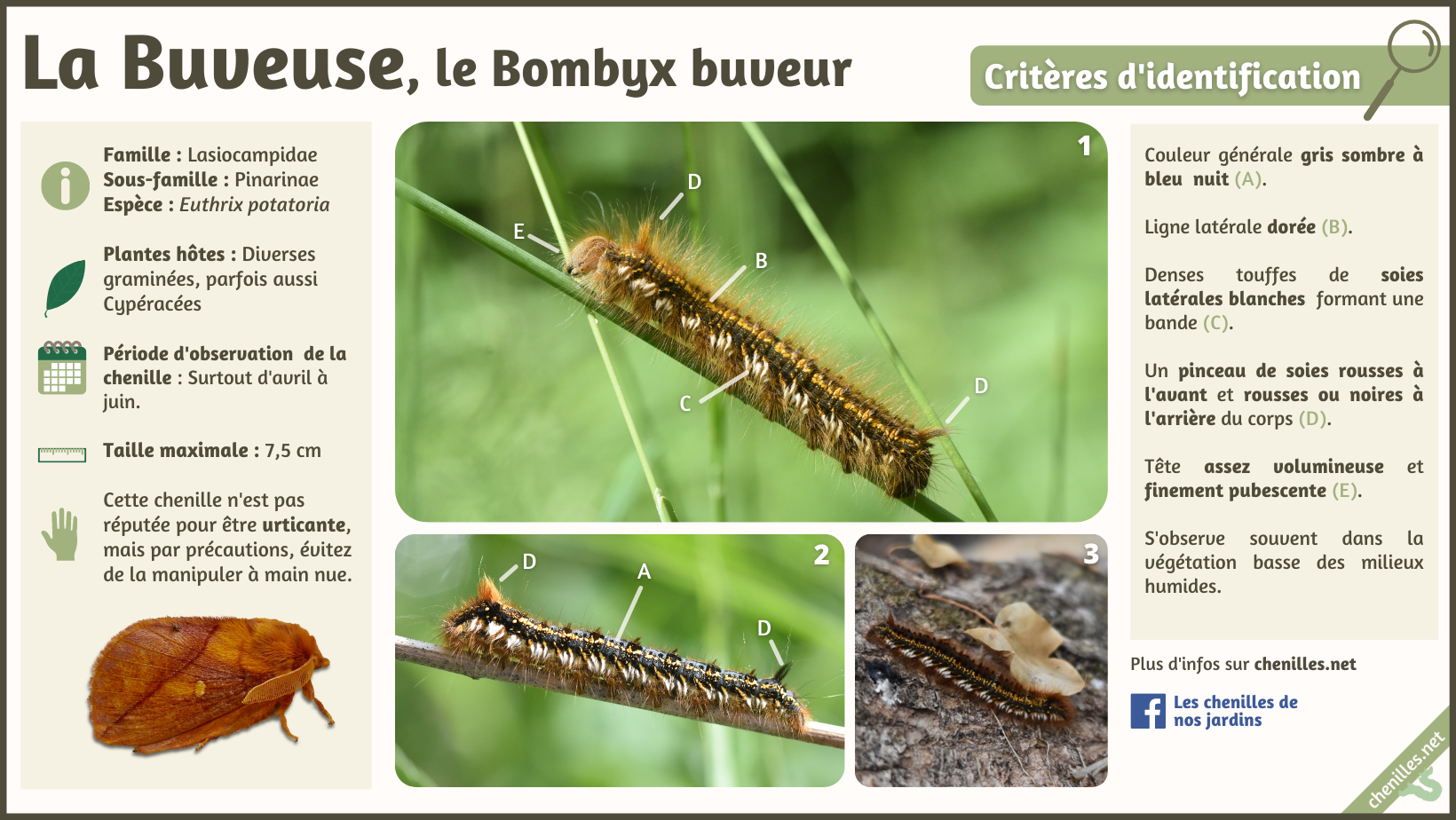 - Artemisiae, le portail dynamique national sur les papillons de France : Euthrix potatoria