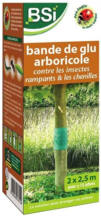 On trouve parfois dans le commerce des bandes de glu destinées à être appliquées contre le tronc des arbres pour éviter le passage des fourmis, des punaises ou des chenilles. Séduisant à première vue par son action mécanique et donc son côté « bio », ce dispositif présente tout de même deux problèmes majeurs :