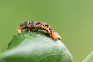 D’autres guêpes de plus petite taille parasitent les Hibernies : les Braconidés. Parmi elles, des espèces assez généralistes comme Cotesia salebrosa, C. sericea et Meteorus ictericus, mais aussi une espèce qui parasite tout particulièrement les chenilles de Géomètres : Protapanteles fulvipes. Ci-contre à droite, la dépouille d’une chenille d’Hibernie défeuillante probablement parasitée par un Braconidé.