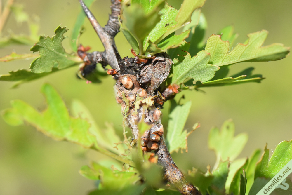 – Ceux du Bombyx de la ronce (Macrothylacia rubi) ont aussi la même forme mais ont des taches ovoïdes sur les côtés et surtout ne sont pas pondus à la même période (plutôt vers mai-juin).
