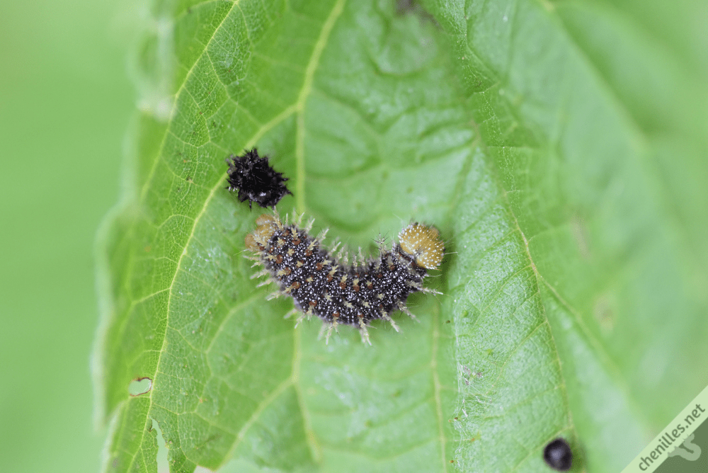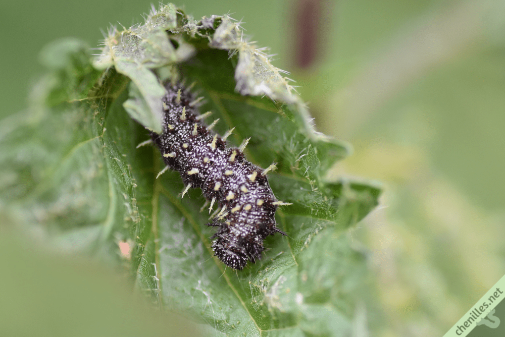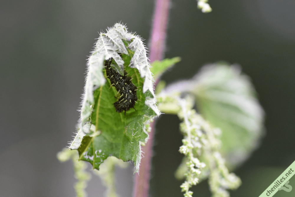 Son développement s’achève après 3 à 4 semaines en été. Généralement, la nymphose a lieu à l’intérieur de l’abri : comme les autres Nymphalidés, la chenille se maintient suspendue la tête en bas grâce à quelques fils de soie, et se nymphose dans cette position. La chrysalide délivre un papillon après une semaine environ en été, et jusqu’à 2 mois en hiver.